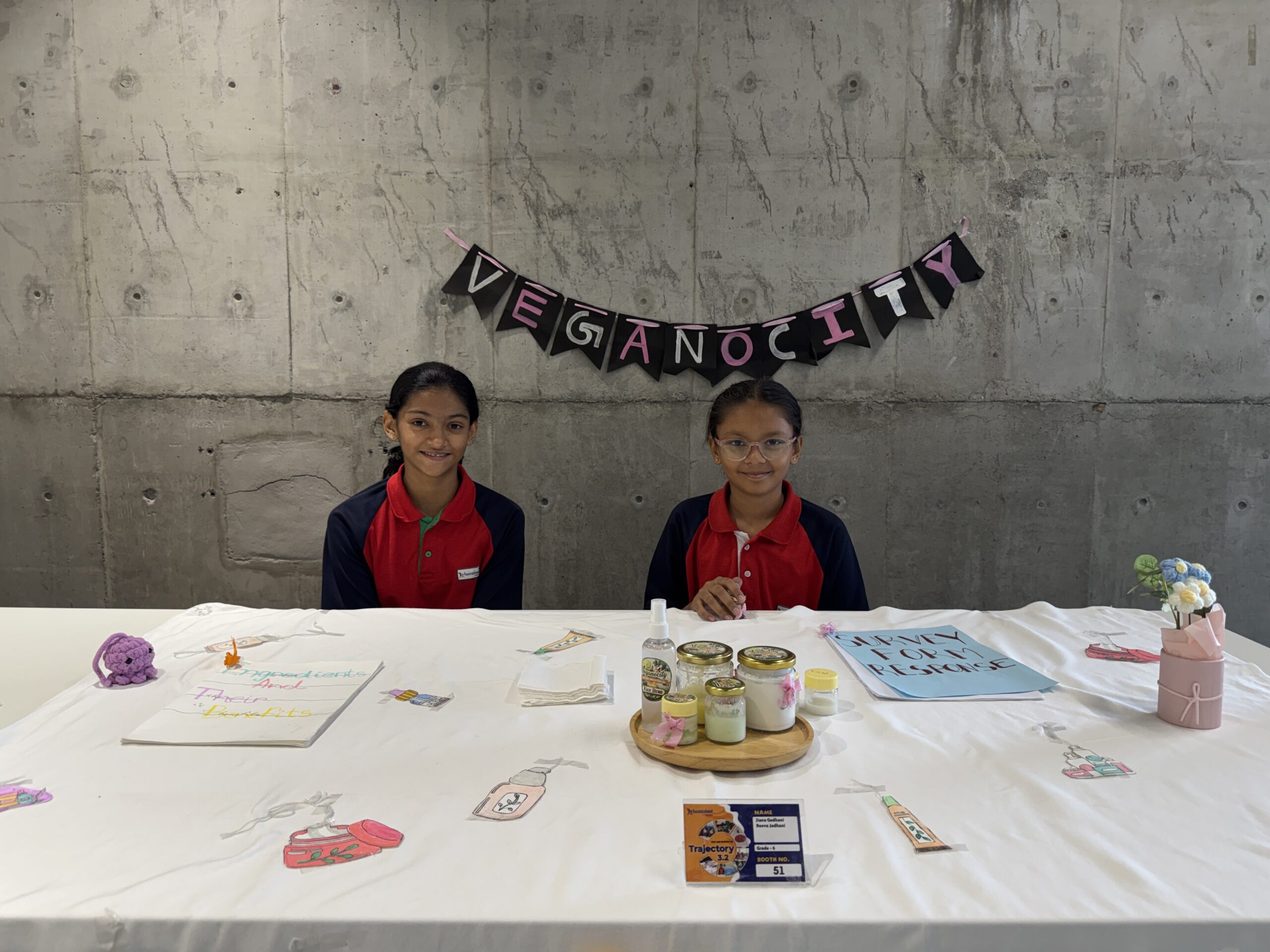 Jiana Godhani and Reeva Jodhani worked on a project titled “Veganocity,” where they focused on developing vegan and sustainable skincare products. The project involved researching natural, plant-based ingredients that are environmentally friendly and safe for skin use. They explored alternatives to chemical-based products and designed formulations that aligned with the principles of sustainability and cruelty-free practices. Through experimentation and testing, they created skincare products that promoted both personal well-being and environmental responsibility.